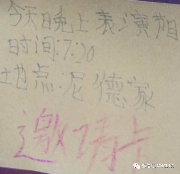 6月11日小朋友们自发组织了晚会,每个小朋友制作邀请卡,邀请还没有参加到培训中的小朋友来参加晚会。
