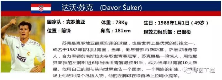 634F5WC的签约球员来自世界各地,有着传奇性色彩的球员及团队,分别在世界杯、欧洲杯等赛事取得冠军,获得欧洲冠军联赛超过50次。可谓是群星璀璨!今天,要讲到的是足坛“黄金左脚”——达沃·苏克。
