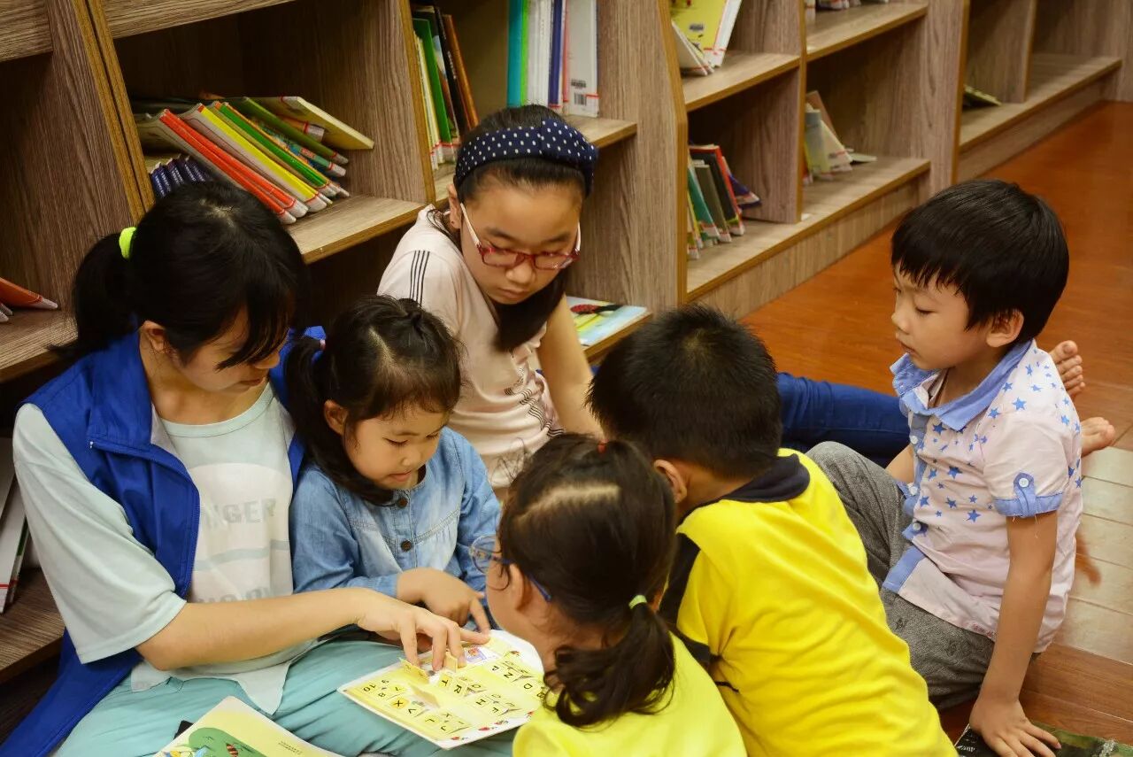 389安静的工作日下午,你会在这里发现几个穿着蓝马甲的年轻人,被几个孩子围着讲故事。坐在门旁的蓝马甲,对偶尔放学进来的孩子示意:“要安静哦。”离开的孩子,把书轻轻放在借阅台上:“姐姐!我要借这本~”