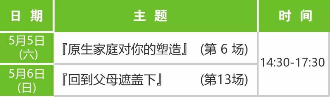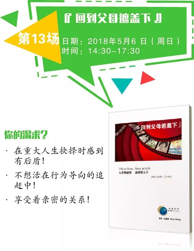 家庭是我们成长的根、力量的源头、向外探索延伸的最大后盾。儿女是人生所有身份的根基,当你确认自己是从这根部而出,愿意以开放接纳的心聆听父母的故事,你不但重新了解自己,也会发现很多遗忘已久的宝贝片段,指引着你回到父母的遮盖下。每个工作者都值得以积极的行动连接上一代,让新的养份重新倾注于枯干的地土,不但帮助你更新过往与父母的互动模式,也承托着你的人生走得更远更轻散!