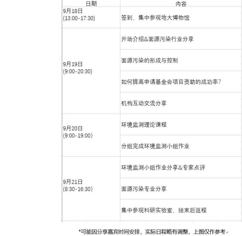 环境监测专题将会通过线上线下学习,结合模拟练习,教你掌握基本的环境监测知识和方法。线上课程计划在9月中上旬开展,所有参与者须完成线上课程的学习。