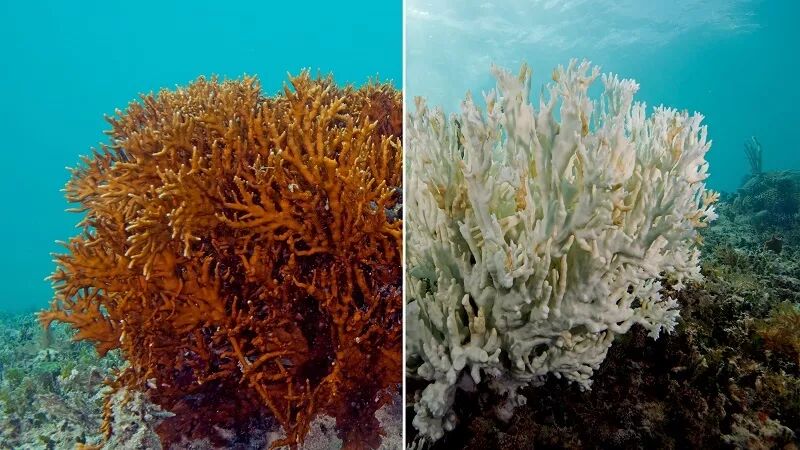 白化前后,百慕大群岛的一种火珊瑚