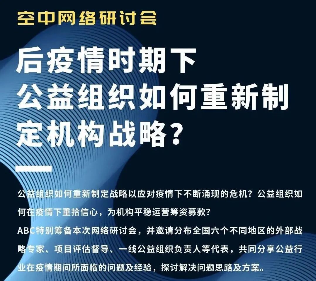 “后疫情时代”似乎已经接近尾声,全国重点防控的北京也已经从二级调为了三级,武汉人民也走出“疫区”重新恢复日常生活。在一同见证并经历过这个时期后,公益人不仅面临的是人与疾病的对抗,也在面临机构在疫情期的协同与生存压力。在被定义的“后疫情时代”中,ABC也曾邀请全国六个城市的实操性公益组织共同开展了一次公益行业现状的研讨,向社会公众和行业伙伴展示疫情对全国公益组织的生存产生了什么样的影响。