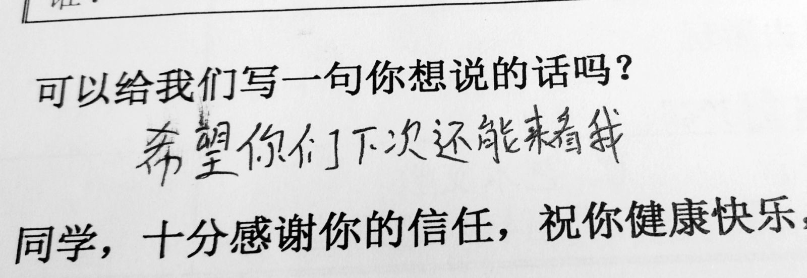 从孩子们稚嫩的笔迹中,我们不难发现,他们需要的不仅是经济上的帮扶,更是爱。婷美小屋爱童行在开展项目的8年间,除了每年支出60万元资助贫困学生外,还与专业社工机构在乡村小学开展心理辅导,帮助孩子们疏导在成长过程中遇到的各种心理问题,提升他们对社会的认同感和对未来的期待。