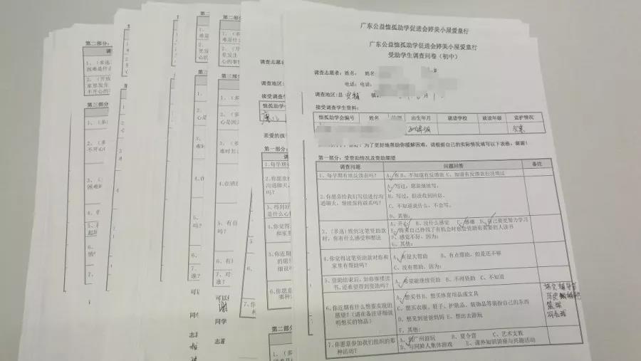 本次回访结束后,我们整理受助学生调查问卷,将学生提出的需求和愿望一一记录,并结合他们的实际情况和年龄段购置相应礼物给予回应。我们用心爱贫童、用爱做慈善,让大家一起与爱同行。