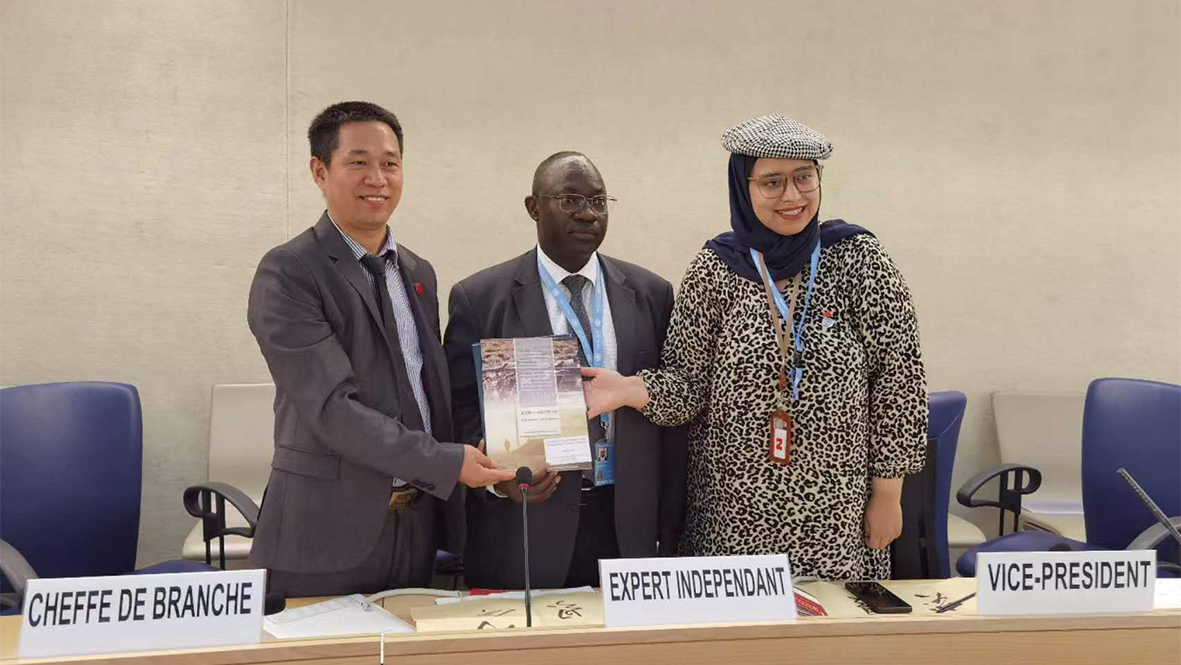 9月18日,在第12次会议“项目3:与促进民主和公平的国际秩序问题独立专家的互动对话”时,陕西省爱国主义志愿者协会代表向联合国日内瓦办事处促进民主和公平的国际秩序问题独立专家利文斯通(Livingstone Sewanyana)博士递交了本会关于美军在侵占阿富汗20年的时间里存在的人权问题调研报告《正义与真相》。