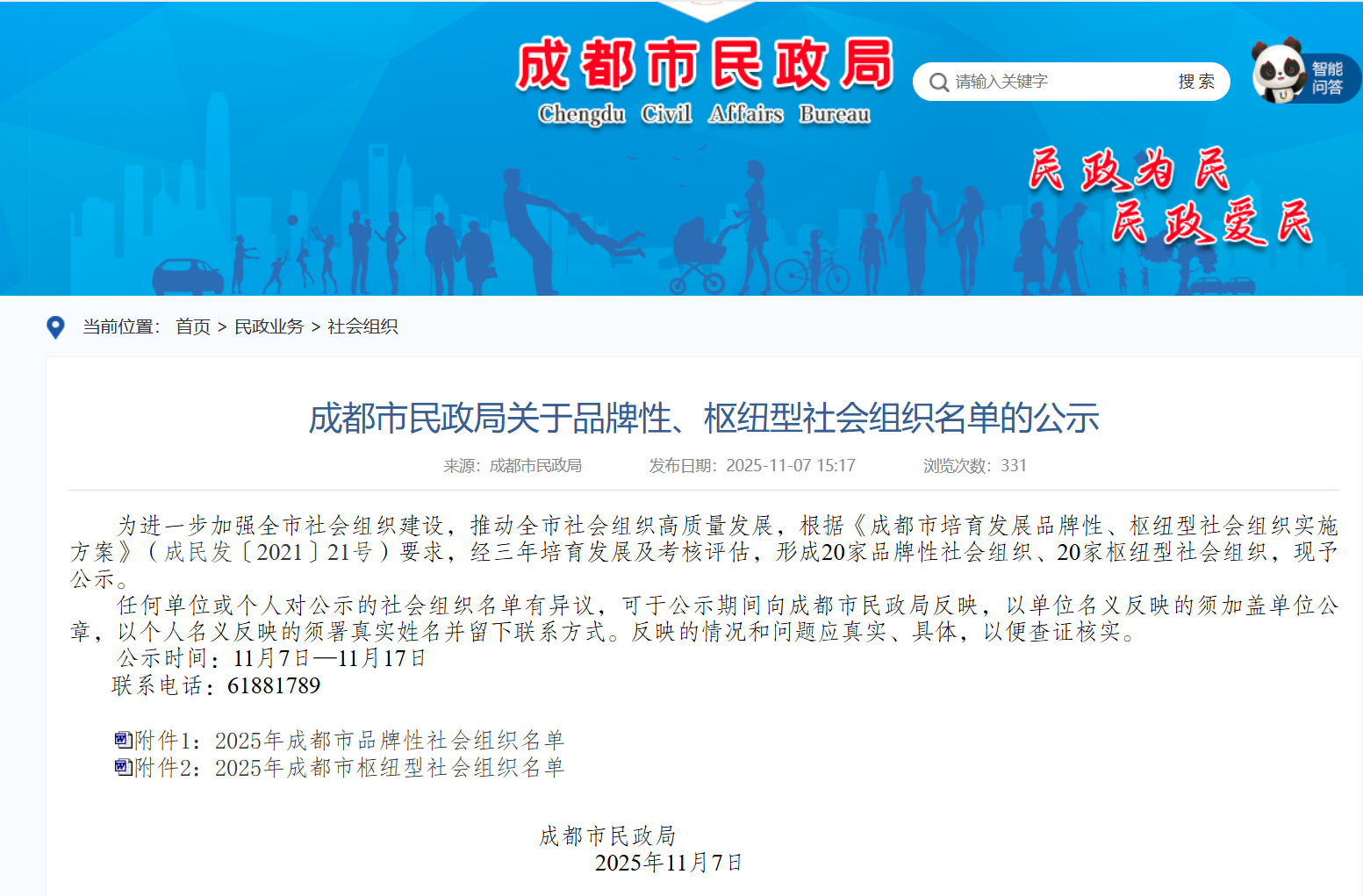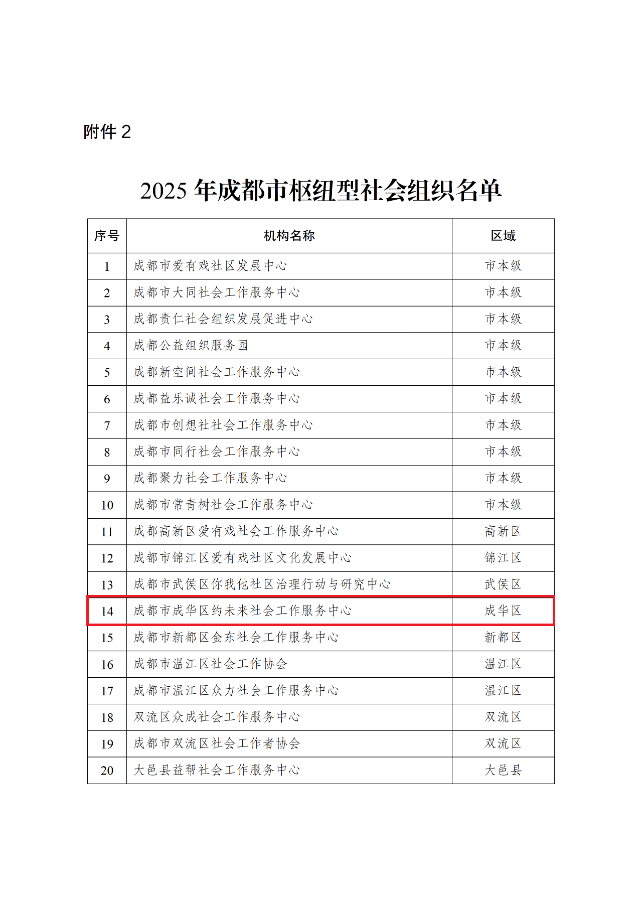 3672025年11月7日,成都市民政局公示2025年成都市品牌性及枢纽型社会组织名单,约未来成功获评成都市枢纽型社会组织,成为全市20家经认证的枢纽型社会组织之一,也是成华区唯一入选的社会组织。